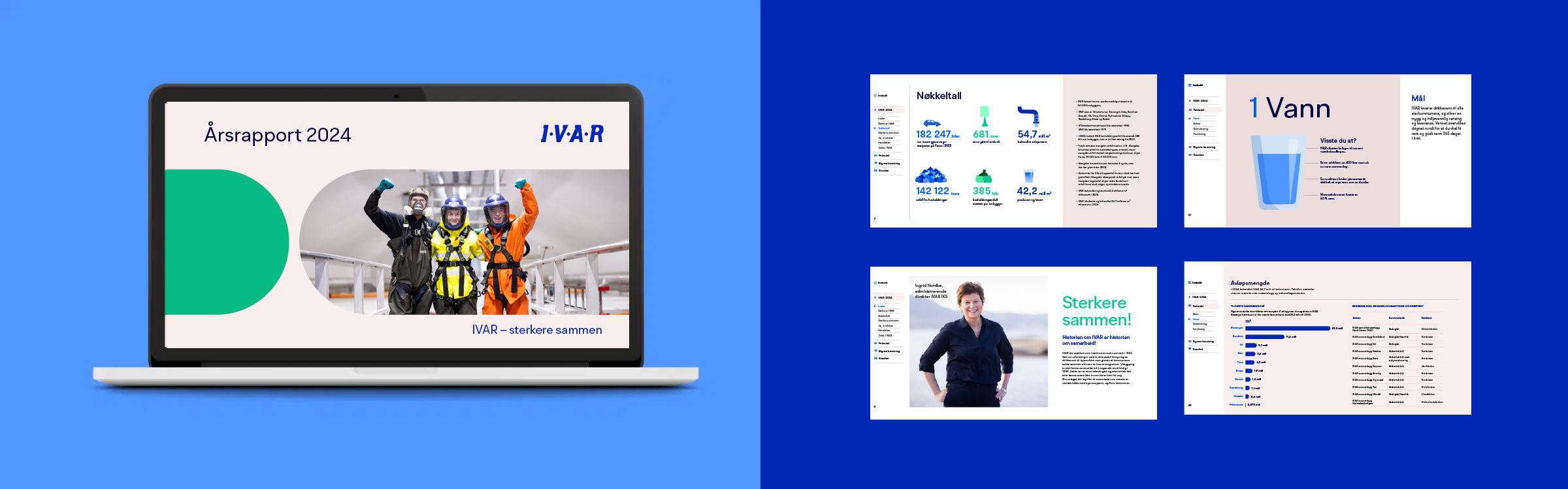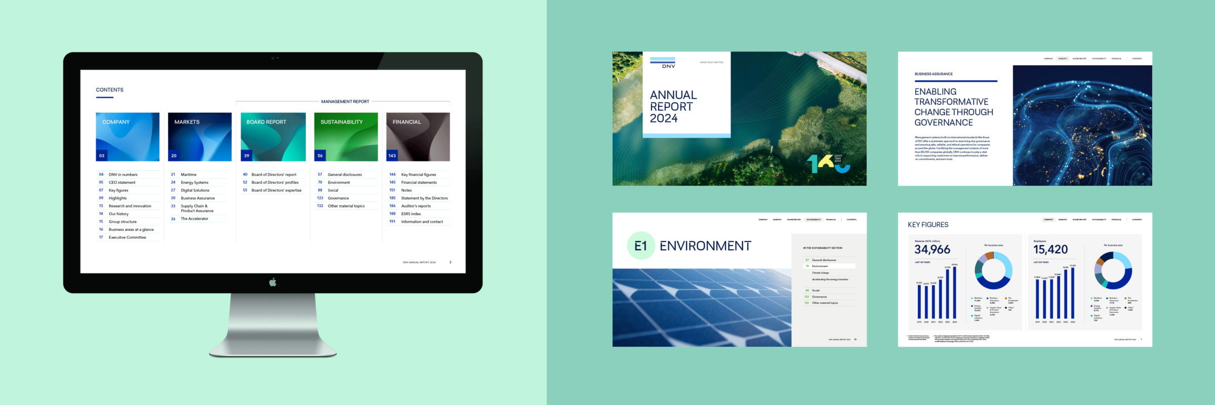 Effektiv navigasjon betyr at leseren kan enkelt klikke seg videre fra styrets beretning til ESG-delen, GRI-tabellen eller nøkkeltall. Grafiske elementer, illustrasjoner, tegninger og infografikk gir rapporten en sterk visuell profil – samme profil som virksomheten din.