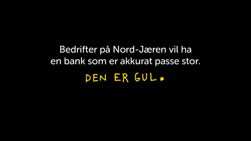 Kampanjen vi har laget er todelt, hvor den ene delen inneholder utsagn fra kunder og bankrådgivere, mens den andre delen handler om hvilke vidt forskjellige næringer våre kunder driver. I kampanjen introduserer vi også begrepet Den er gul – en positiv bekreftelse på at vi tar kundens ønsker på alvor, og en understrekning av at Sandnes Sparebank – den banken er gul.