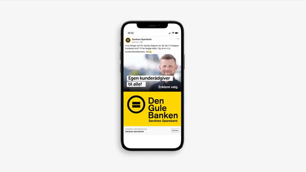 I høstens kampanje for Den Gule Banken Sandnes Sparebank - som foregår midt i stortingsvalgkampen - har vi lånt valgkamp-manér for å presentere Den Gule Banken og deres merkevareløfte "enklere valg". Formens stoppeffekt er at man ser kunderådgivere fra Sandnes Sparebank i stedet for politikerne vi er vant til å se på gatehjørnene.
