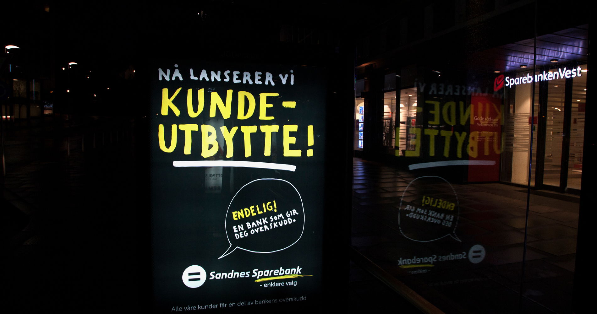 Lanseringen av kundeutbytte blir behørig feiret med en kampanje fra den gule banken, sånn at flest mulig skal få med seg det glade budskapet. Både lån og innskudd i banken gir grunnlag for kundeutbytte, og alle får: personkunder, bedrifter, lag og foreninger.