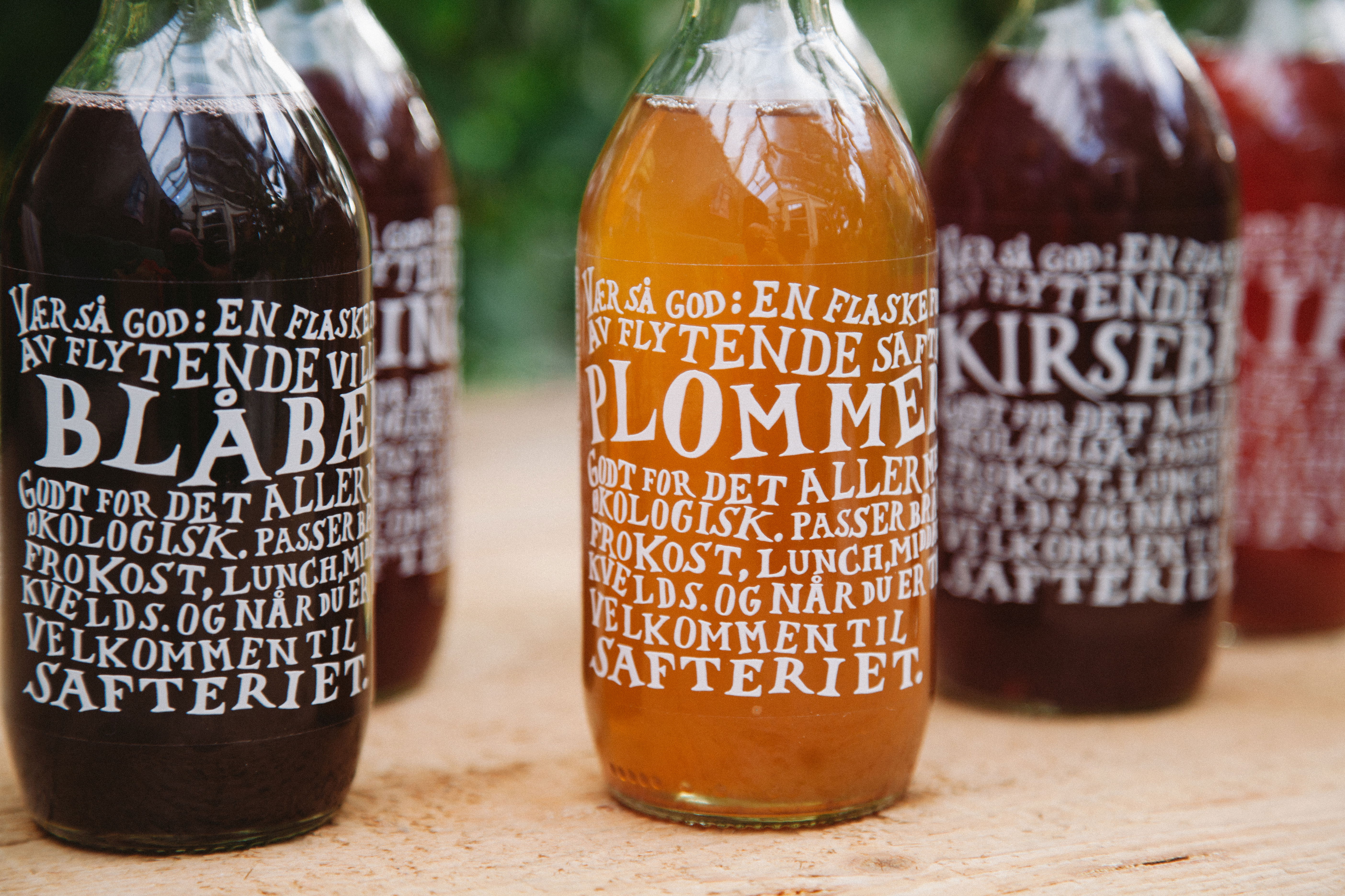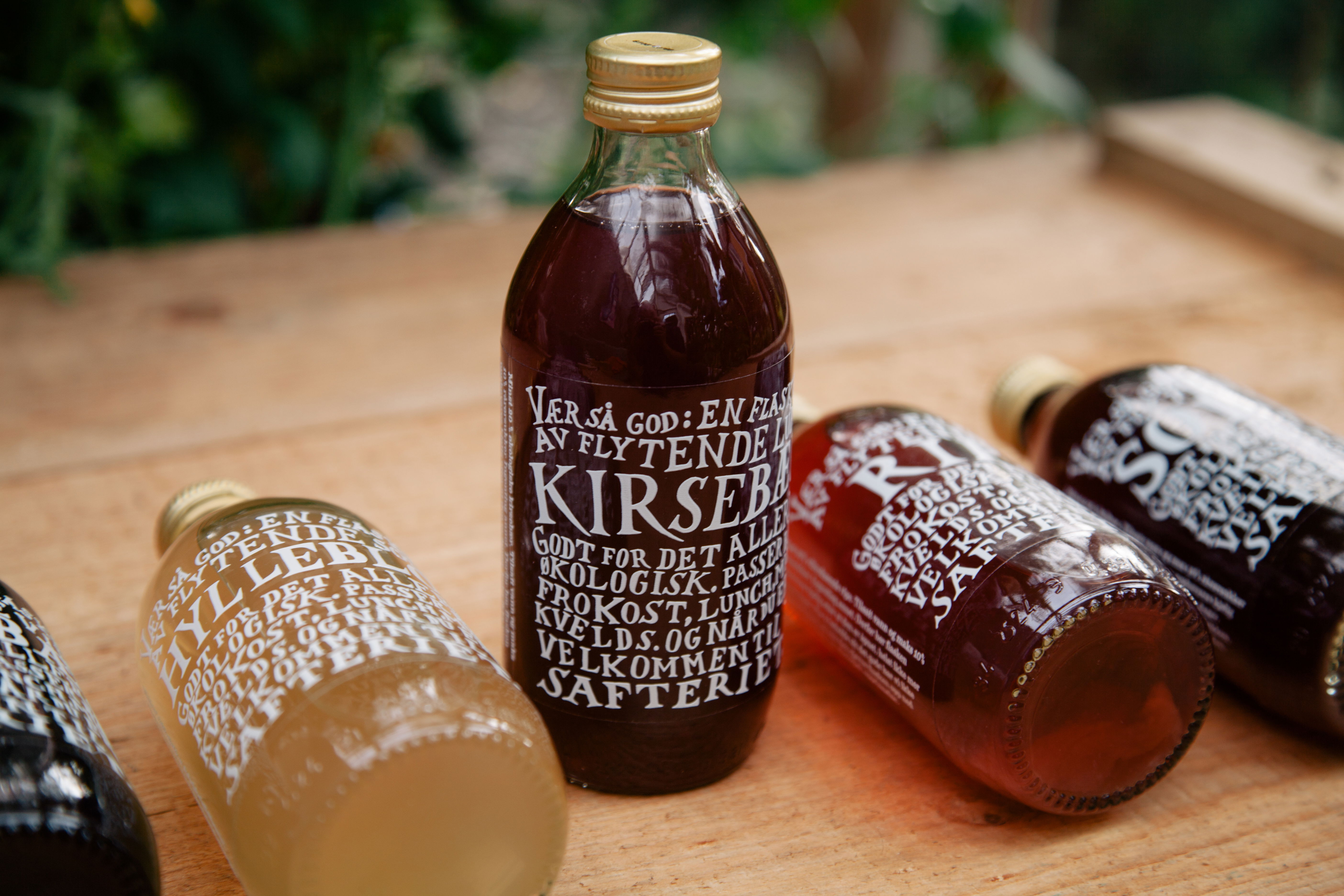 Vi fikk oppgaven og valgte å designe etiketter til et godt kjent, økologisk safteri som holder til i Stavanger. Etikettene ble håndtegnet og tilpasset både flaskenes form og det som er inni, og var tenkt å framheve råsaften som til nå hadde vært skjult bak tradisjonelle papiretiketter – men først og fremst ble de designet for å kunne vise fram det beste trykkeriet kan levere til matbransjen.