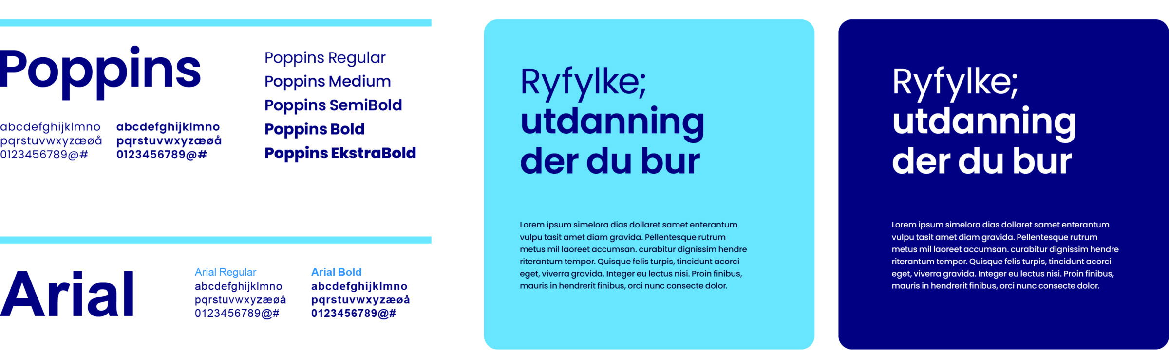 I Ryfylke utdanningssenters visuelle identitet kombineres skrifttypene Poppins og Arial for å skape et uttrykk som balanserer lesbarhet og karakter.