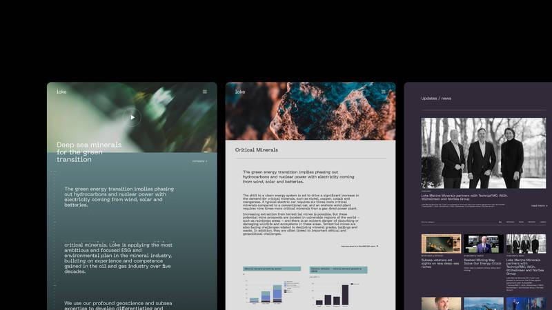 Selskapet ønsket seg en visuell identitet som kunne fortelle historien om hvem de er, hva de ønsker å bidra med og hvordan de vil gjennomføre det. Loke Marine Minerals leverer teknologi og AI, og ønsket å kommunisere sin ambisjon som et fremtidsrettet teknologiselskap.